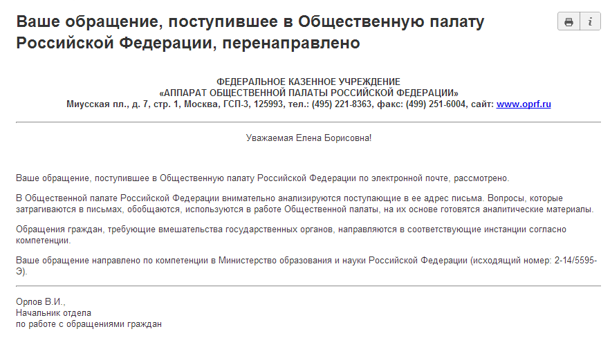 metelckina liudmila Жалоба Опубликовано: 25 марта, 2014 http://www.ng.ru/education/2014-03-25/8_minobr.html Как пишет Suliko, Тут несколько объяснений может быть. 1.журналист не в курсе, на видеозаписи такой информации нет 2. Чиновник врет журналисту. Не удивлюсь. На сайте Минюста информации тоже нет. 3. Приказ зарегистрировали, но в обход правил, так как идет ветиклррупционная проверка. Если так, то и Минюст нарушает закон. Но это не очень вероятным кажется. Поделиться сообщением Ссылка на сообщение Поделиться на других сайтах